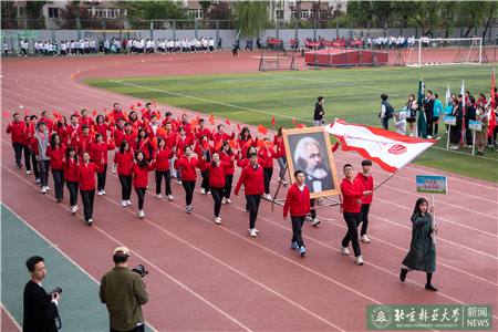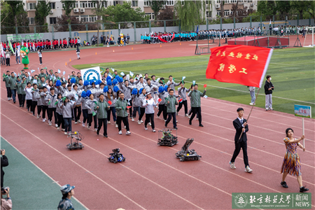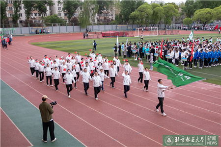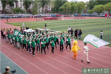 After the flag-raising ceremony and following the grand sound of “March of the Athletes”, the teachers and athlete representatives from all schools and departments, dressing in uniform, entered the field with sonorous and powerful steps which showed the youthful vigor of the BFUers.