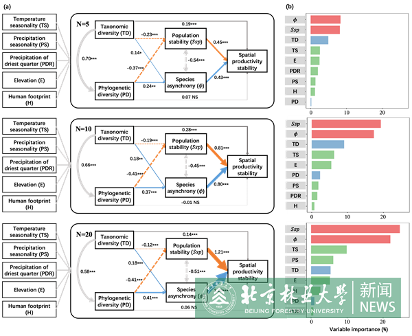 Lately, the researchers of forest management from the College of Forestry made new progress in biodiversity–spatial stability relationship among regional communities across different spatial scales and environmental conditions in a temperate forest region. Related research result“Environmental filtering drives biodiversity–spatial stability relationships in a large temperate forest region” was published in international renowned journal Functional Ecology (Q1, IF=6.282).