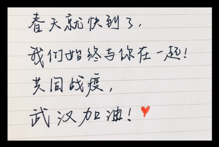 (Work No. 6) This is a video made by students of the College of Biological Sciences and Technology. Those who are from Hubei Province showed confidence and expressed their gratitude for the love and supports from the school and other classmates. Students from other than Hubei Province showed concern about those who are in Hubei, and made commitments to follow school arrangements to prevent and control the epidemic under scientific guideline. They all are right behind Wuhan and China!