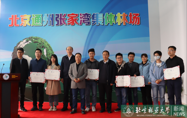 The ceremony was attended by the relevant leaders of Division of Science and Technology of BFU, Ministry of Social Services and Integrated Research of BFU, Beijing Academy of Agriculture and Forestry Sciences, Beijing Scientific Research Institute of Landscape and Afforestation, and Forestry and Park Bureau of Tongzhou District People's Government of Beijing Municipality.