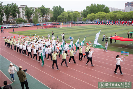 On the morning of April 21st, the 2023 Spring Sports Meeting of Beijing Forestry Univeristy with the theme of “Play sports in the sun, embrace health in BFU”kicked off. The sports meeting, lasting two days from April 21st to 22nd, is devided into student competition and faculty competition, and teams from 23 schools and departments participated in.