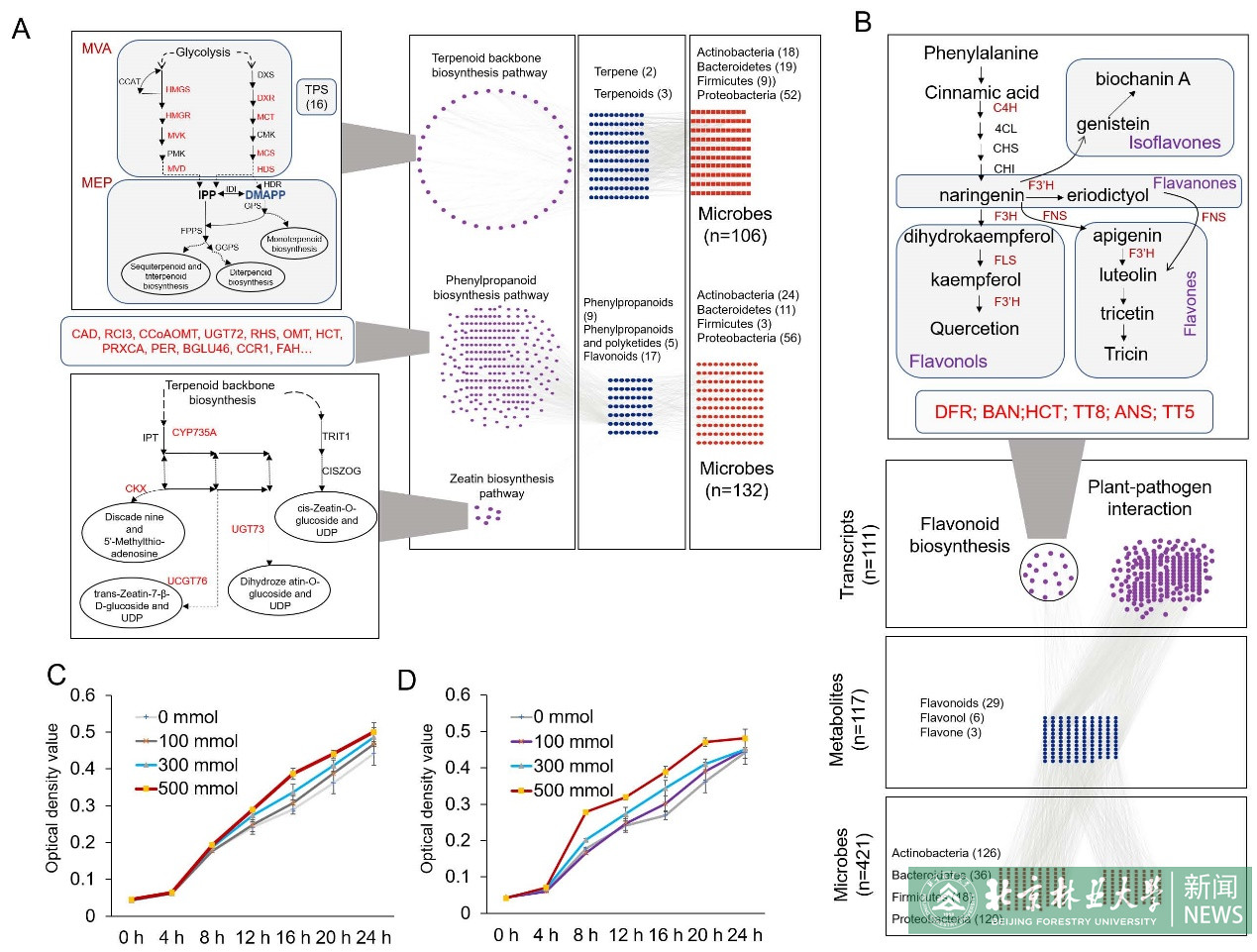 The tree molecular breeding team from the College of Biological Sciences and Technology revealed that comprehensive plant-microbe-metabolite regulation network regulating poplar defense