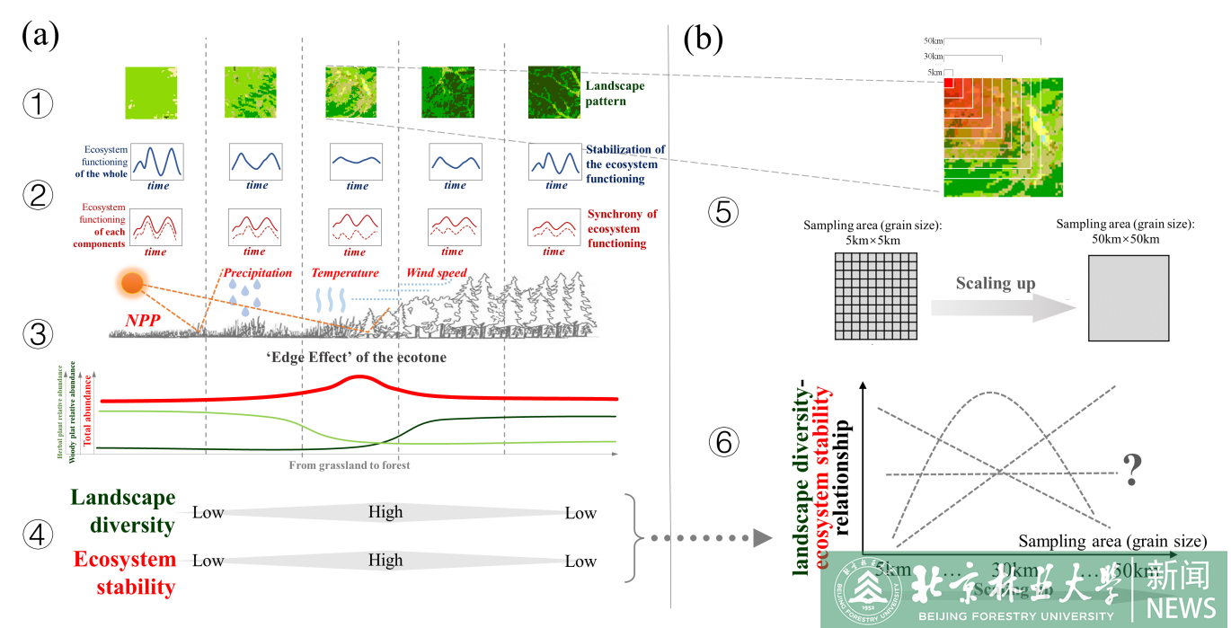 Youth teacher Li Zhouyuan from the School of grassland science, who cooperated with other domestic acholars, recently published a paper entitled “Stable or unstable? Landscape diversity and ecosystem stability across scales in the forest–grassland ecotone in northern China”(《稳定还是不稳定?中国北方林草过渡带景观多样性与生态系统多尺度稳定性》)in international journal "Landscape Ecology", which shows that landscape diversity influences the stability of ecosystem functioning in the forest–grassland ecotone, and spatial heterogeneity of ecosystem types (i.e., landscape diversity) is associated with the temporal variability of regional climate variables and the stability of vegetation productivity. These findings provide empirical analyses and scientific reference for the integration of forests and grass, and they also have implications for the management of landscape resources to maintain the sustainability of forest–grassland ecotones.
